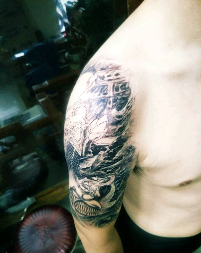 • 纹身吧推荐的披肩图腾半胛纹身图案作品展示