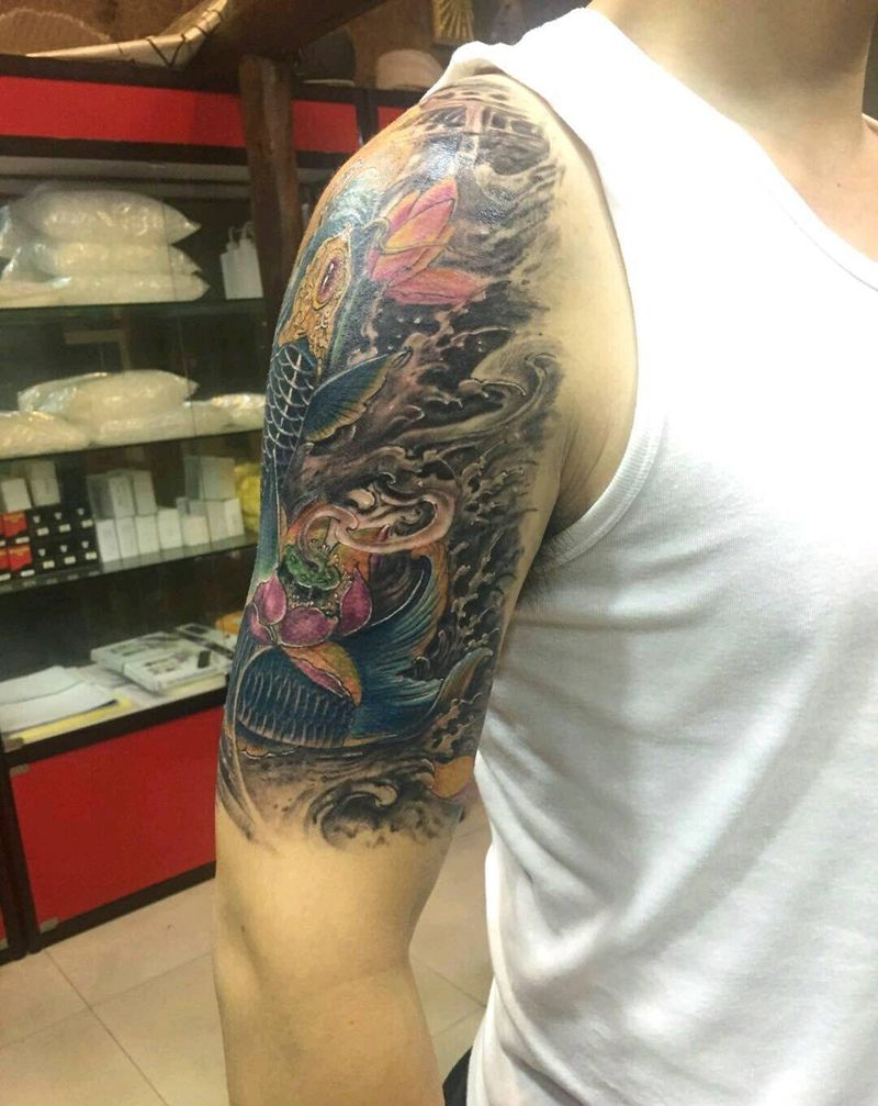 鲈鱼跃龙门纹身图片