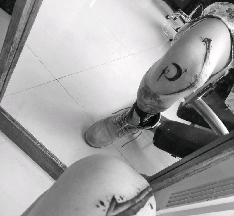 • T包小腿吹火男+阿多福纹身图片_腿部老传统新传统吹火男阿
