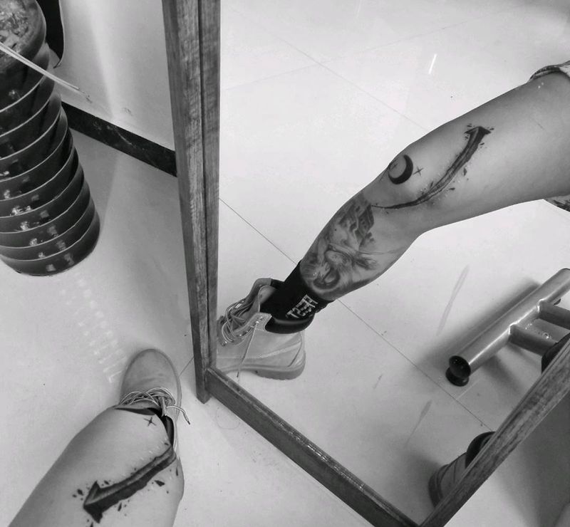 • T包小腿吹火男+阿多福纹身图片_腿部老传统新传统吹火男阿