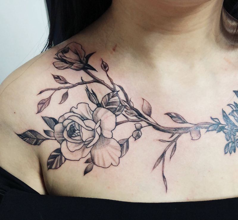 • 女性大花胸纹身_43张霸气漂亮的女性大花胸纹身图案作品