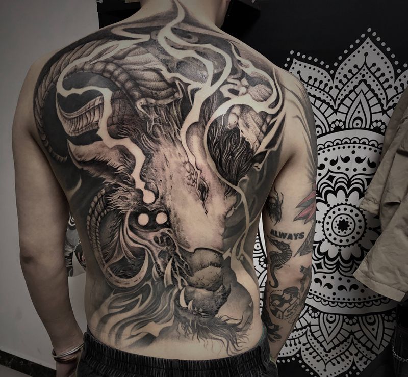 • T云龙九郎纹身图片_背部老传统云龙九郎纹身图案
