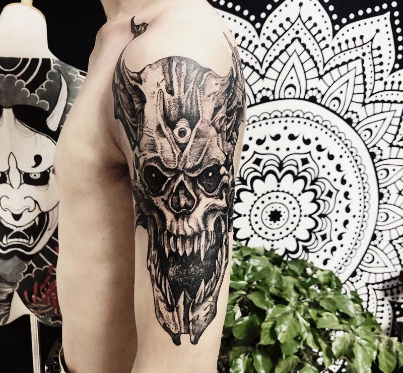 当前位置: 首页 >山东省菏泽市纹身店-鲸 刺青纹身图案>骷髅纹身图片_手臂纹身图案