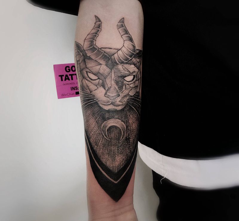 司芬克斯纹身图片_手臂点刺纹身图案
