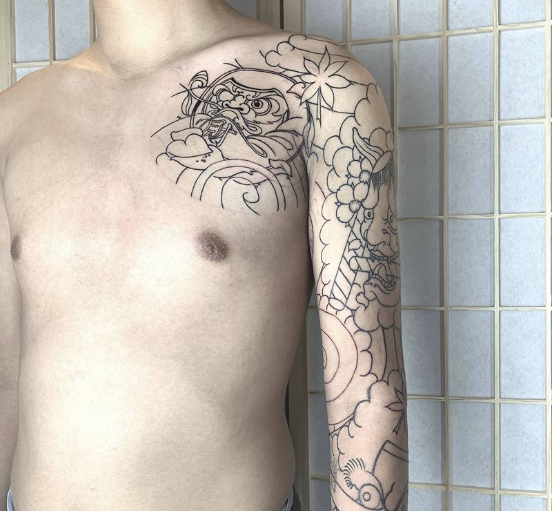 当前位置: 首页 >山东省德州市纹身店-勾陳刺青处纹身图案>半胛花臂纹身图片_老传统纹身图案