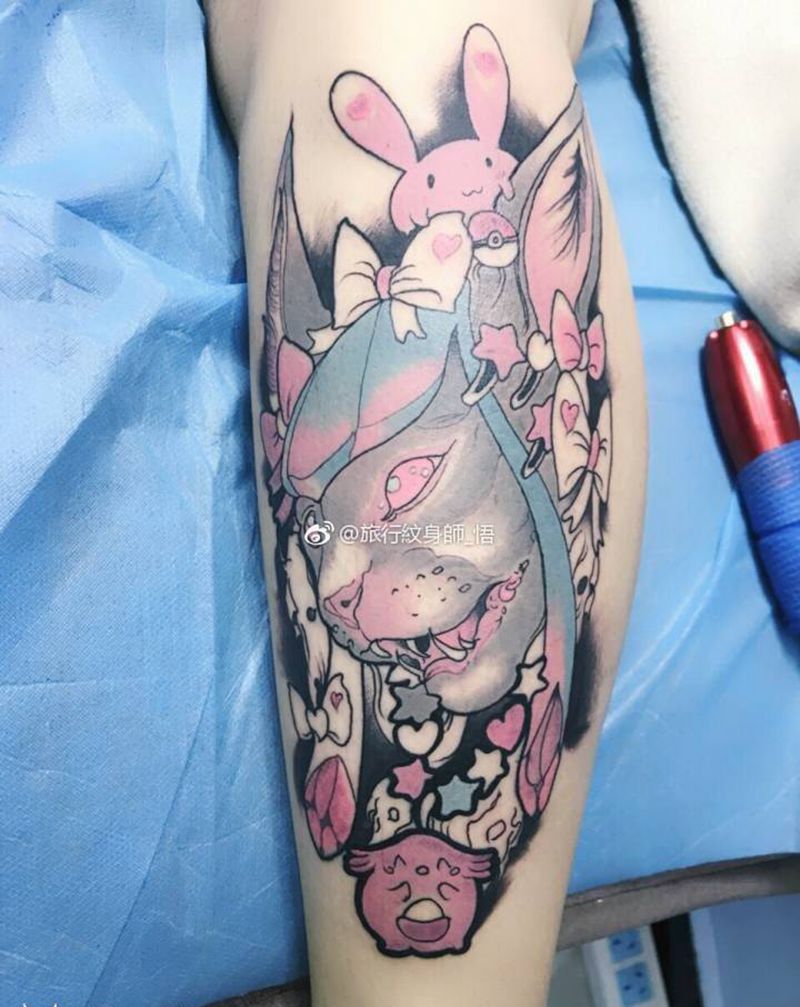 • T网红王老大花腿龙纹身图片_腿部新传统纹身图案