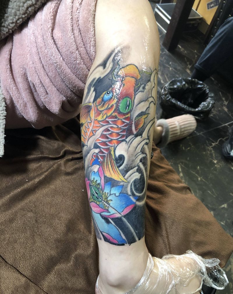 当前位置: 首页 >山东省菏泽市纹身店-菏泽墨舞刺青工作室纹身图案>鲤鱼纹身图片_腿部修改纹身图案