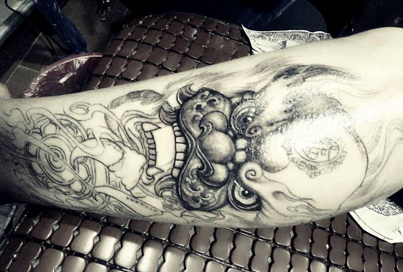 当前位置: 首页 >山东省菏泽市纹身店-菏泽墨舞刺青工作室纹身图案>唐狮纹身图片