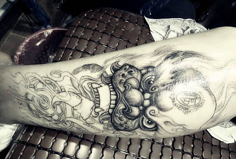 当前位置: 首页 >山东省菏泽市纹身店-菏泽墨舞刺青工作室纹身图案>唐狮纹身图片