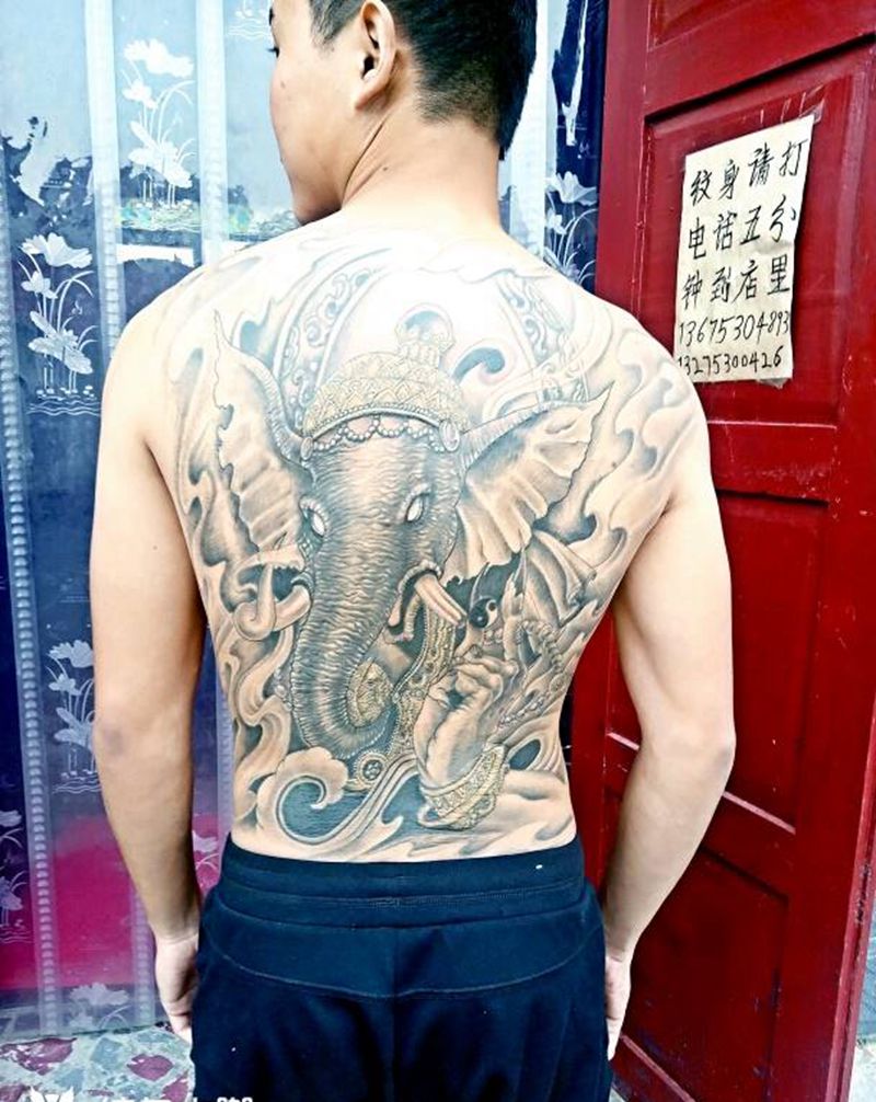 当前位置: 首页 >山东省菏泽市纹身店-菏泽墨舞刺青工作室纹身图案>象神纹身图片