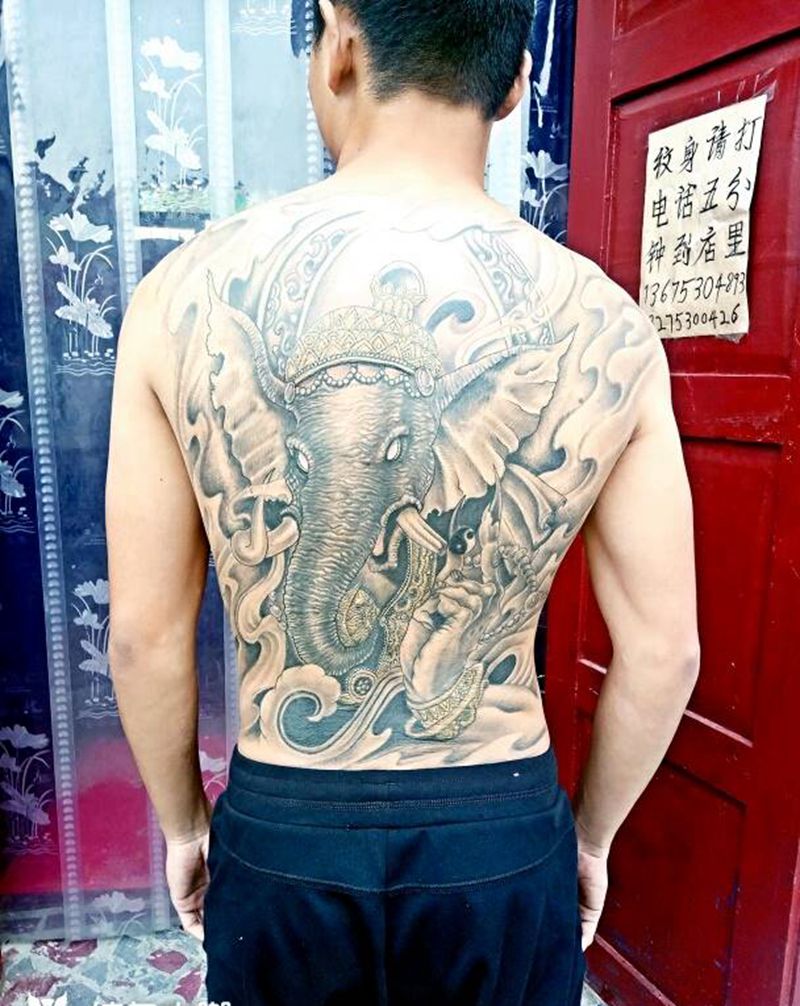 当前位置: 首页 >山东省菏泽市纹身店-菏泽墨舞刺青工作室纹身图案>象神纹身图片