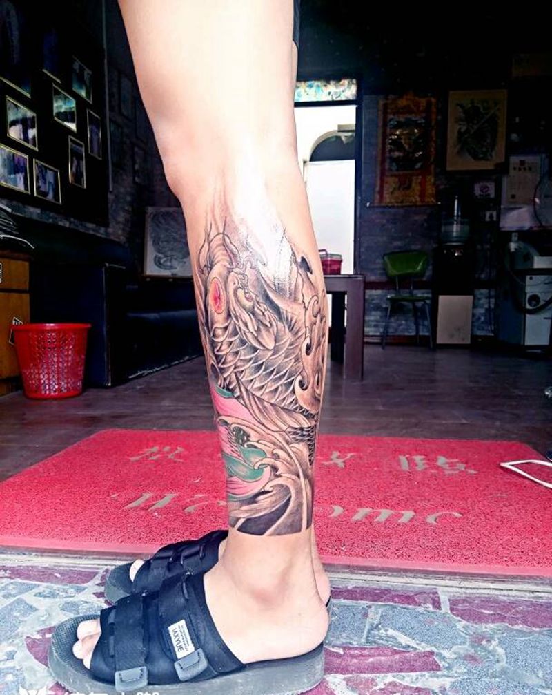 • T网红王老大花腿龙纹身图片_腿部新传统纹身图案