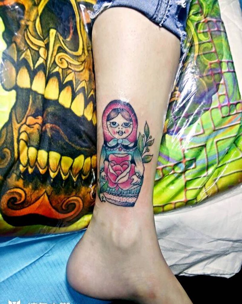 • T包小腿吹火男+阿多福纹身图片_腿部老传统新传统吹火男阿
