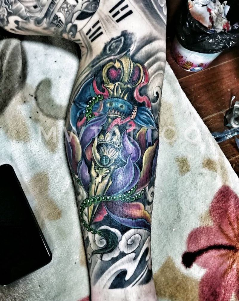 当前位置: 首页 >山东省菏泽市纹身店-菏泽墨舞刺青工作室纹身图案>佛教法器纹身图片_腿部纹身图案