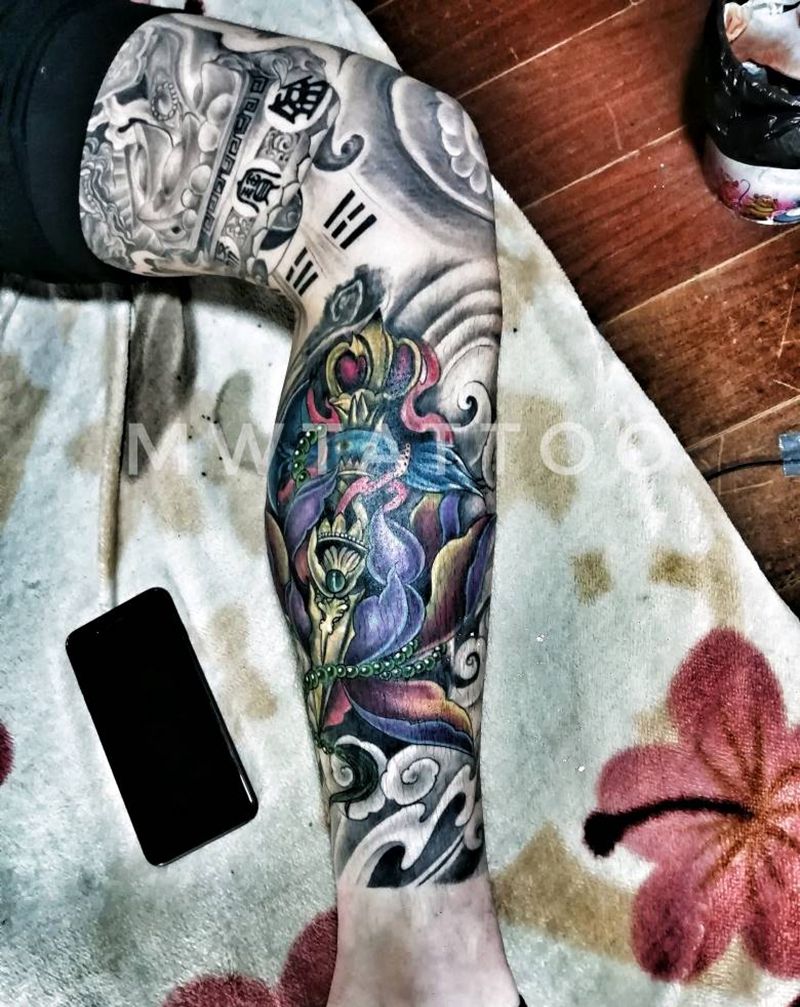 当前位置: 首页 >山东省菏泽市纹身店-菏泽墨舞刺青工作室纹身图案>佛教法器纹身图片_腿部纹身图案