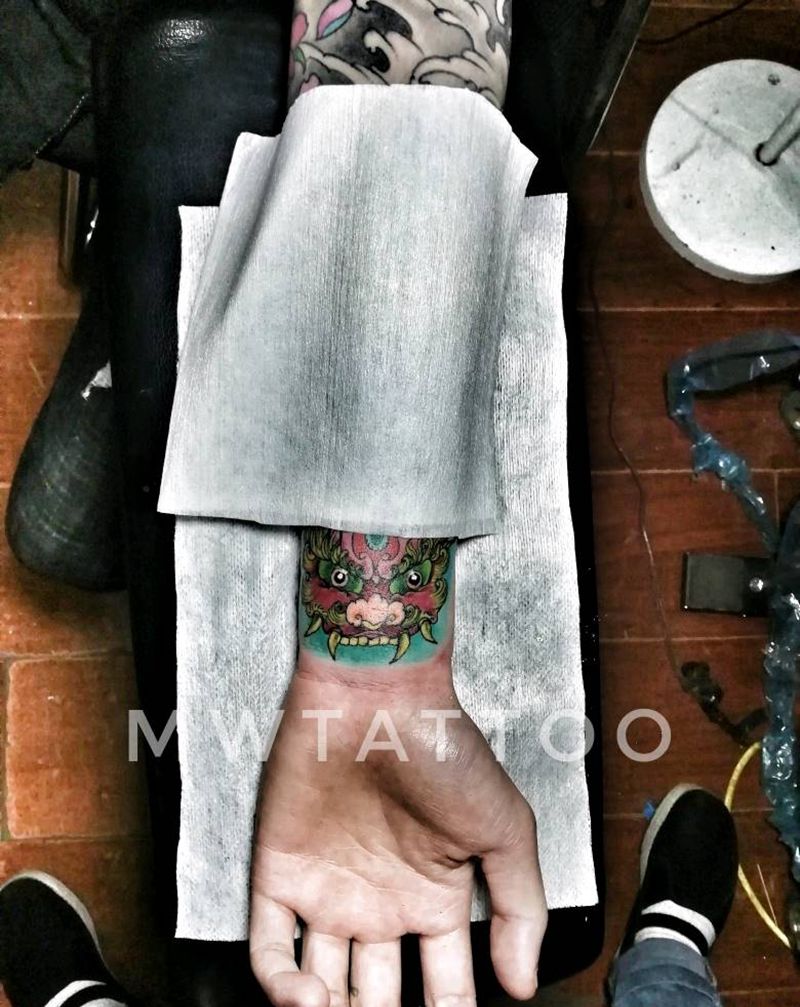当前位置: 首页 >山东省菏泽市纹身店-菏泽墨舞刺青工作室纹身图案>唐狮纹身图片_手部手臂新传统Old School纹身图案