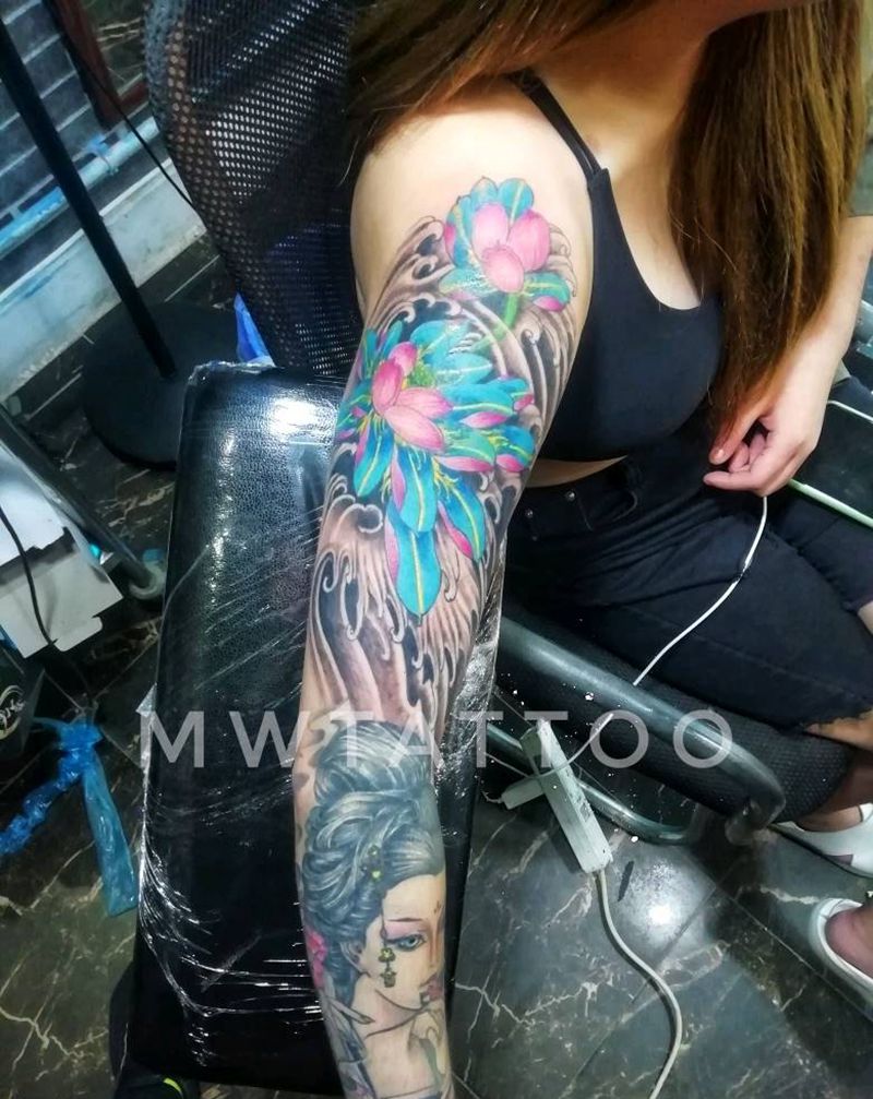 一组15张莲花纹身手