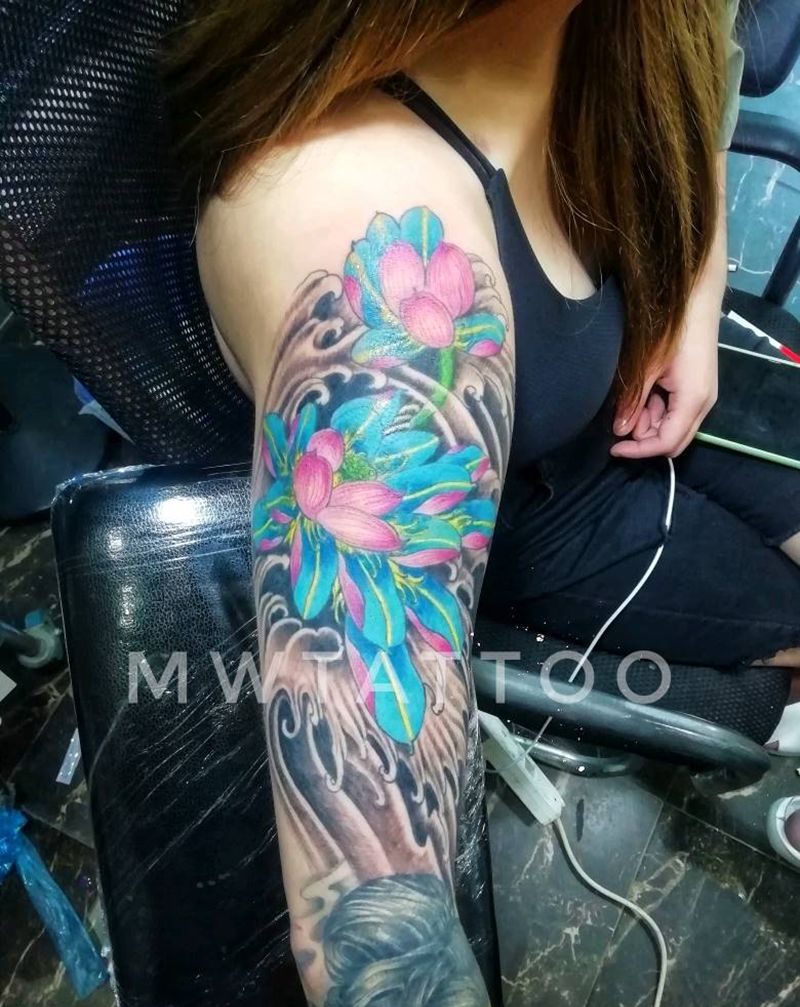 一组15张莲花纹身手