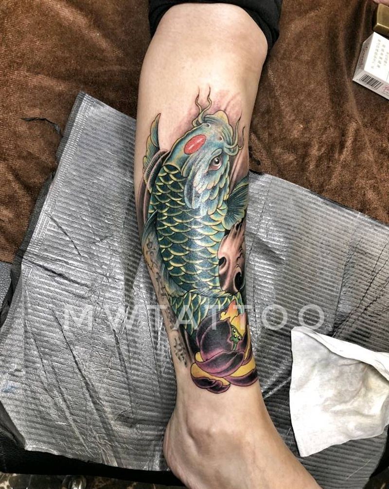 当前位置: 首页 >山东省菏泽市纹身店-菏泽墨舞刺青工作室纹身图案>鲫鱼纹身图片_腿部新传统遮盖纹身图案