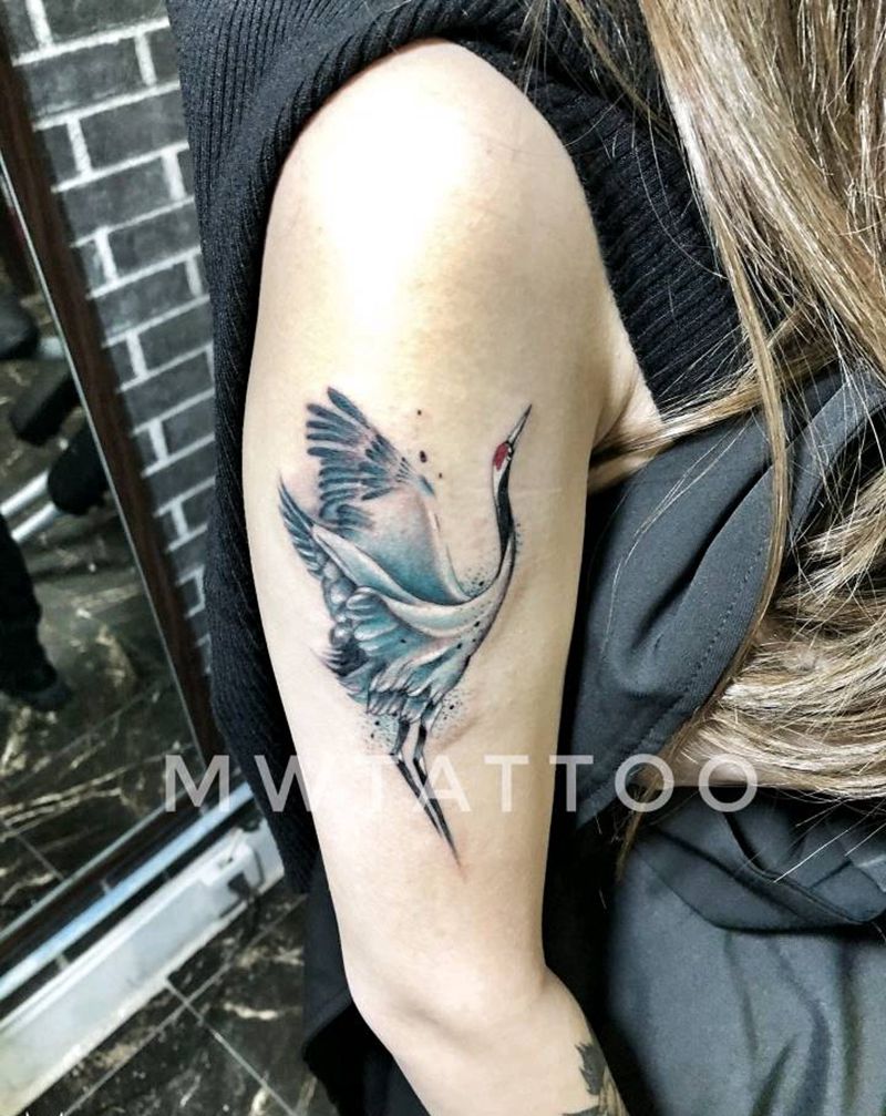 仙鹤纹身图片_手臂肩部清新纹身图案