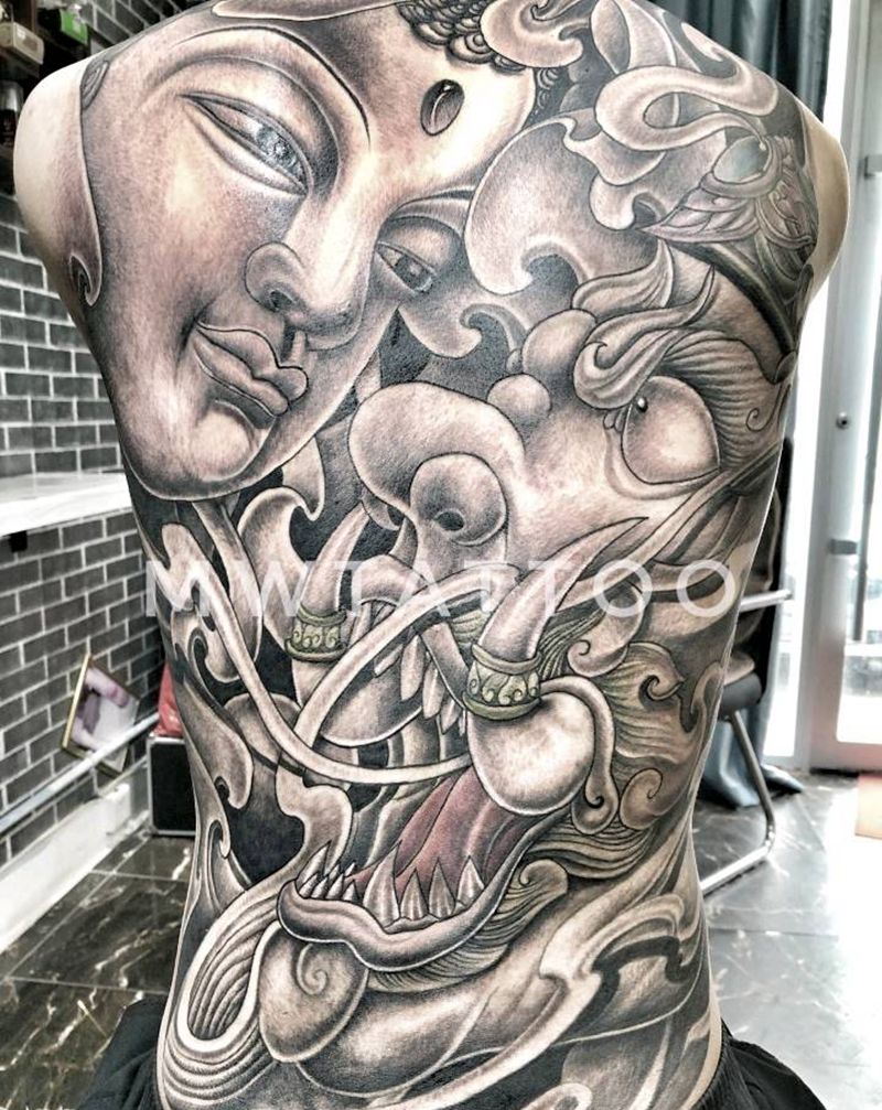 当前位置: 首页 >山东省菏泽市纹身店-菏泽墨舞刺青工作室纹身图案>佛魔纹身图片_背部新传统纹身图案