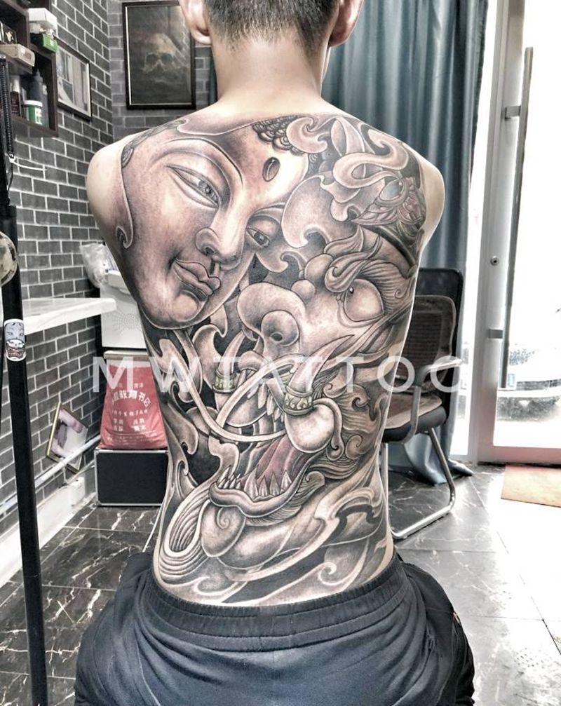 当前位置: 首页 >山东省菏泽市纹身店-菏泽墨舞刺青工作室纹身图案>佛魔纹身图片_背部新传统纹身图案