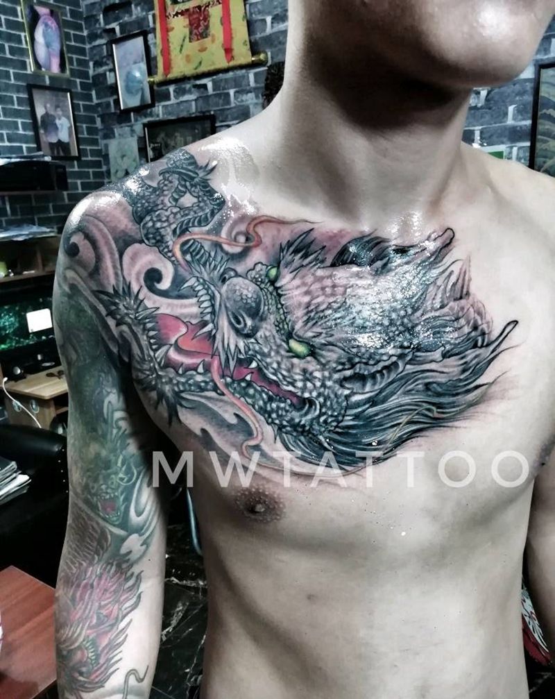 当前位置: 首页 >山东省菏泽市纹身店-菏泽墨舞刺青工作室纹身图案>龙头纹身图片_胸部肩部新传统纹身图案