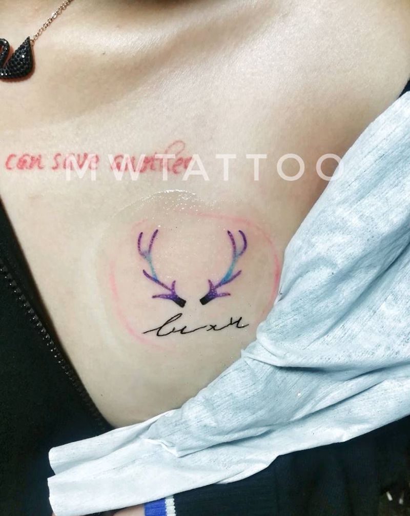 鹿脚纹身图片_胸部纹身图案