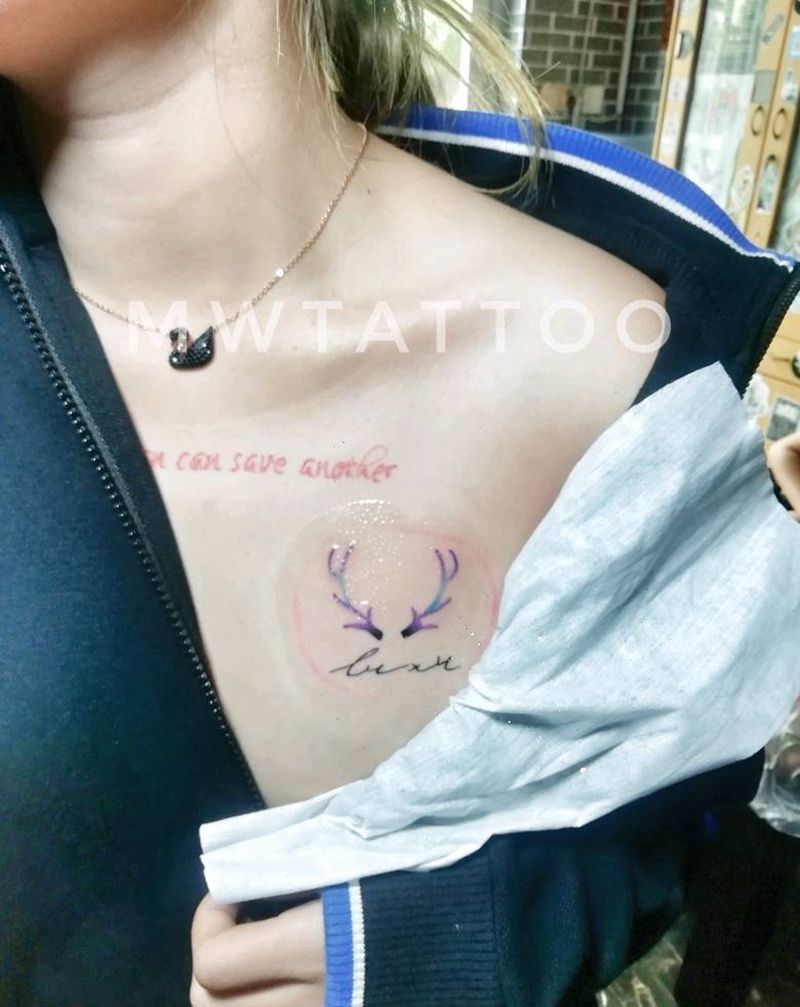 鹿脚纹身图片_胸部纹身图案