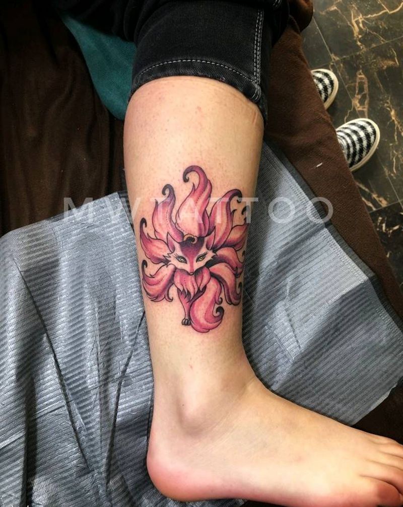 九尾狐纹身图片_腿部New School纹身图案