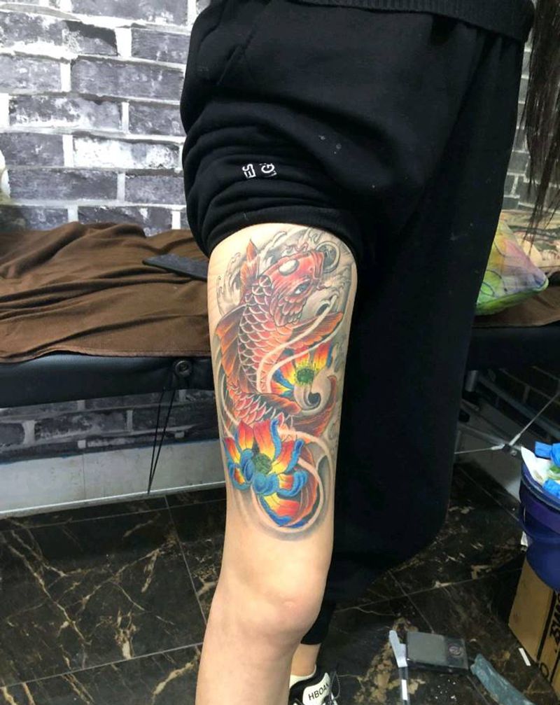 当前位置: 首页 >山东省菏泽市纹身店-菏泽墨舞刺青工作室纹身图案>招财鱼纹身图片_腿部新传统纹身图案