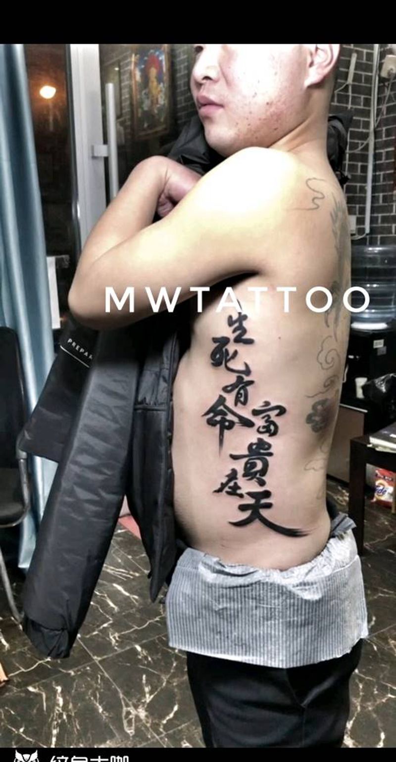 当前位置: 首页 >山东省菏泽市纹身店-菏泽墨舞刺青工作室纹身图案>生死有命富贵在天纹身图片_腰部腹部图腾纹身图案