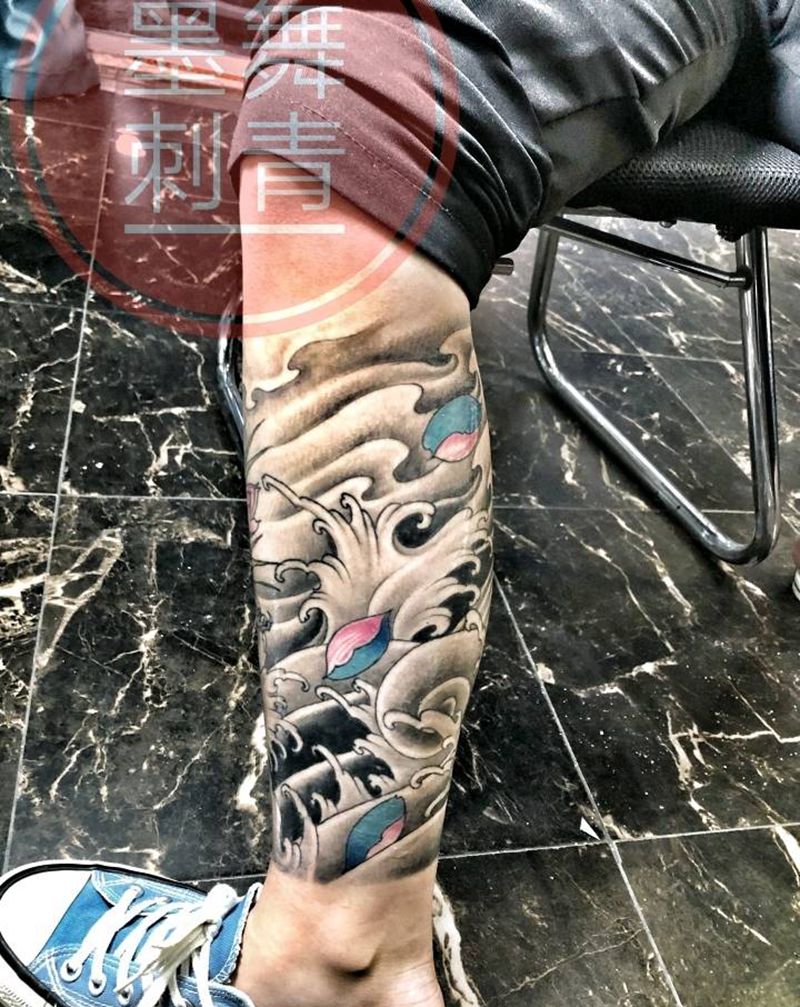 • T网红王老大花腿龙纹身图片_腿部新传统纹身图案