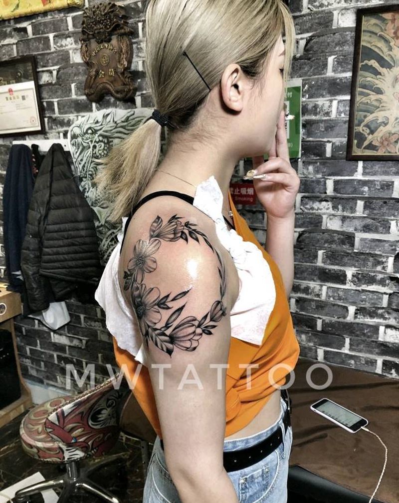 当前位置: 首页 >山东省菏泽市纹身店-菏泽墨舞刺青工作室纹身图案>素花纹身图片_肩部素花纹身图案