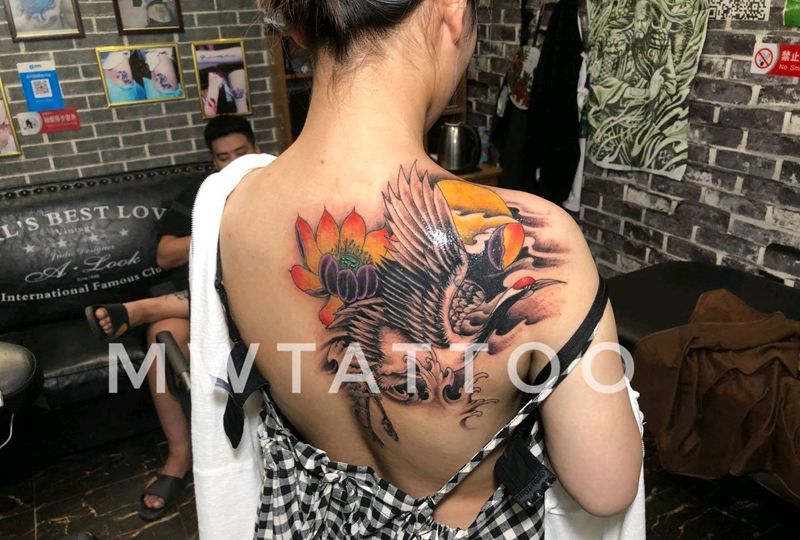 当前位置: 首页 >山东省菏泽市纹身店-菏泽墨舞刺青工作室纹身图案>鹤纹身图片_背部遮盖纹身图案