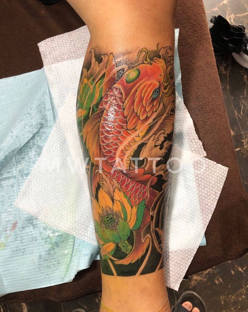 当前位置: 首页 >山东省菏泽市纹身店-菏泽墨舞刺青工作室纹身图案>鲫鱼纹身图片_腿部新传统纹身图案