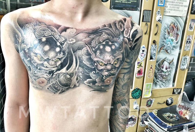 当前位置: 首页 >山东省菏泽市纹身店-菏泽墨舞刺青工作室纹身图案>唐狮纹身图片_胸部新传统纹身图案