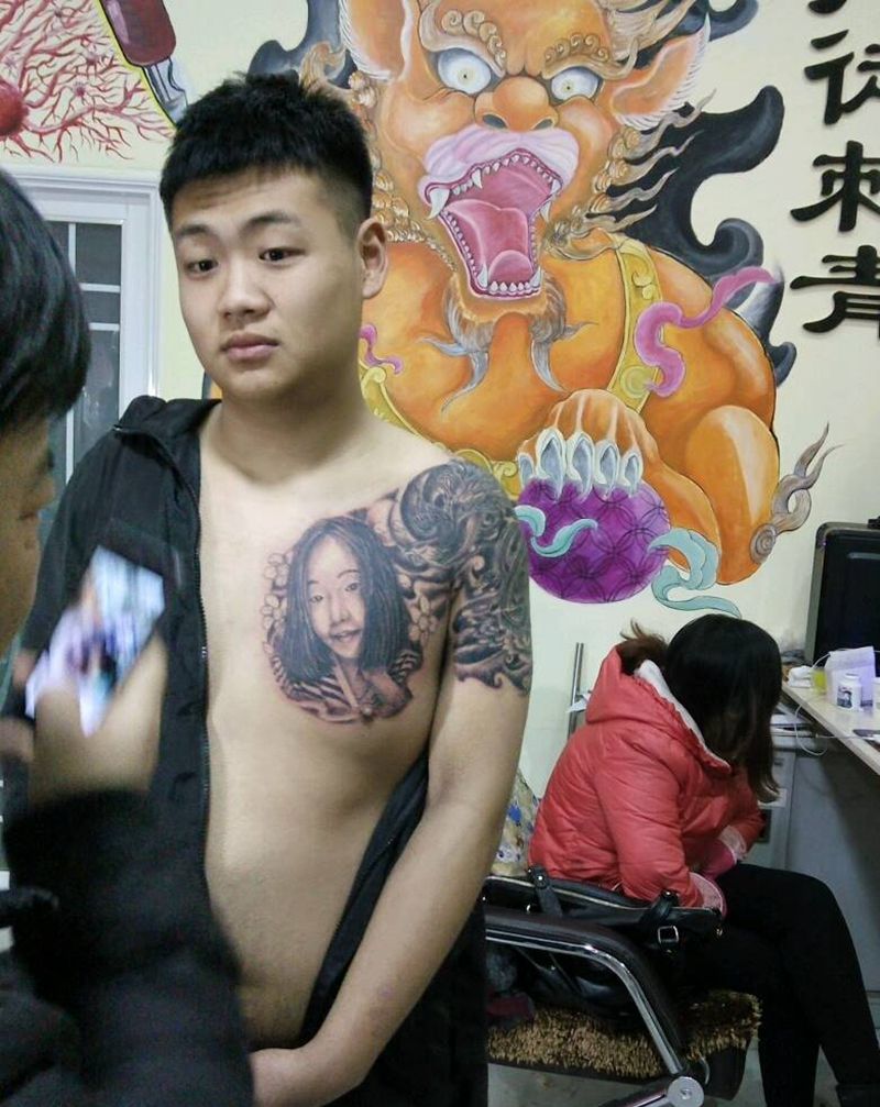 当前位置: 首页 >山东省滨州市纹身店-滨州惠民一铭纹身纹身图案>肖像添加半甲纹身图片_胸部传统肖像写实人物原创成品纹身图案