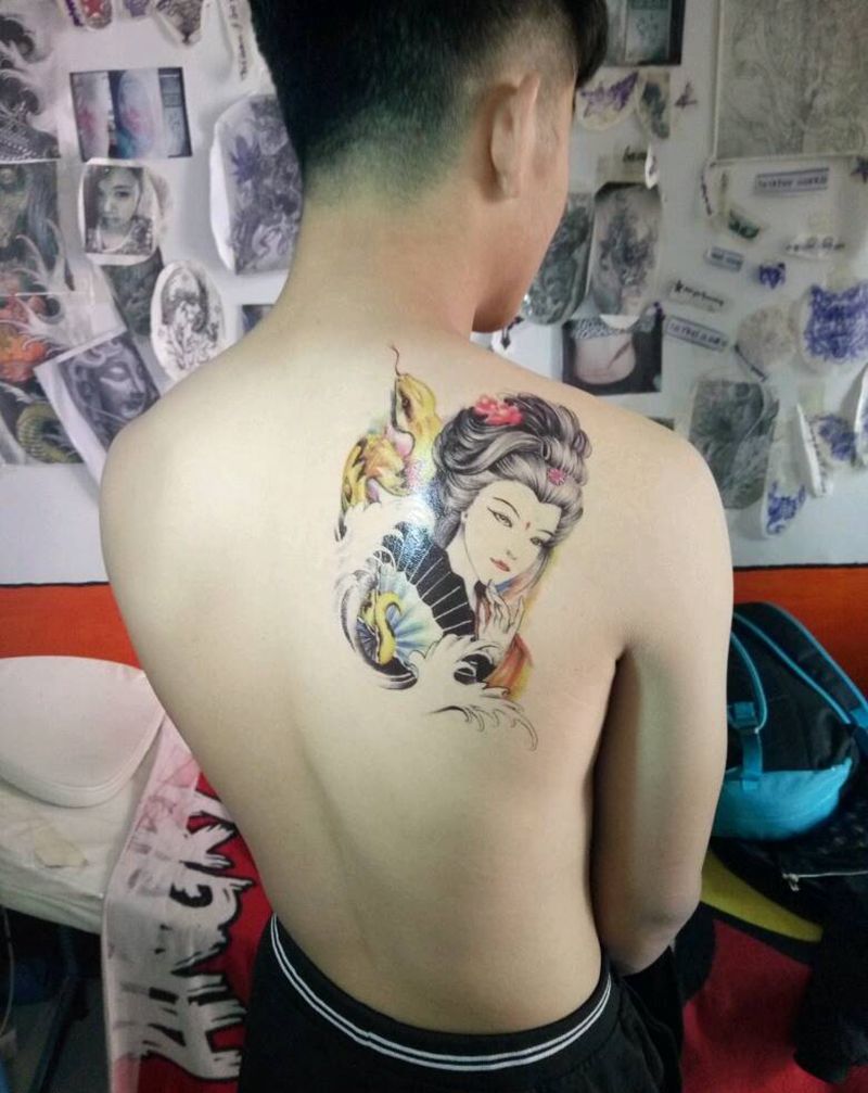 当前位置: 首页 >山东省滨州市纹身店-滨州惠民一铭纹身纹身图案>艺妓纹身纹身图片_肩部背部传统人物成品纹身图案