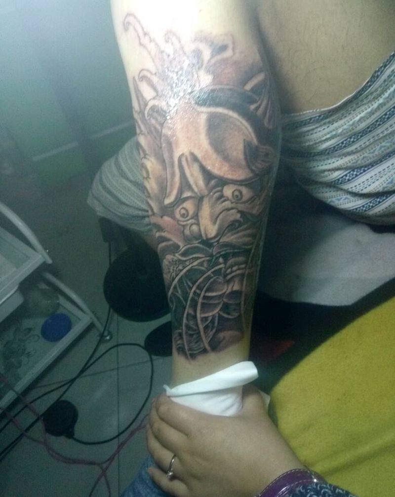 般诺纹身纹身图片_腿部传统鬼神成品原创纹身图案