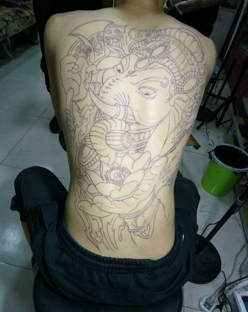 满背象神,纹身图片