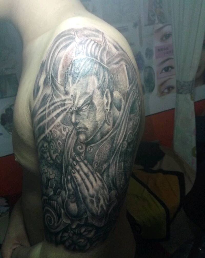 当前位置: 首页 >山东省滨州市纹身店-滨州惠民一铭纹身纹身图案>大臂二郎纹身图片_原创纹身图案