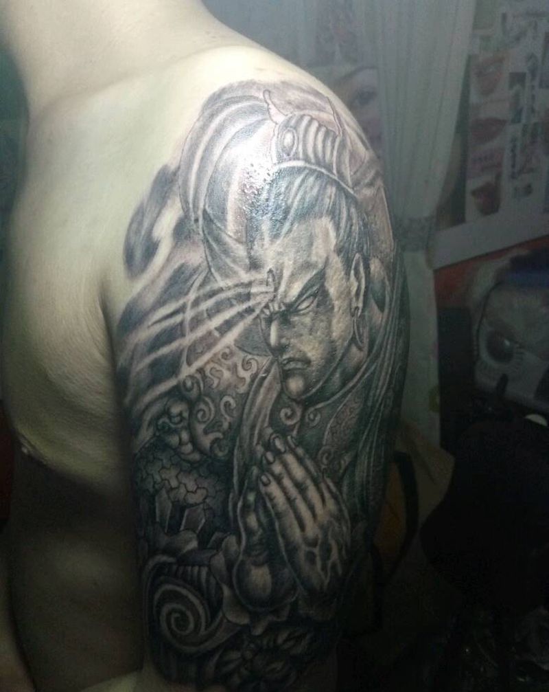 当前位置: 首页 >山东省滨州市纹身店-滨州惠民一铭纹身纹身图案>大臂二郎纹身图片_原创纹身图案