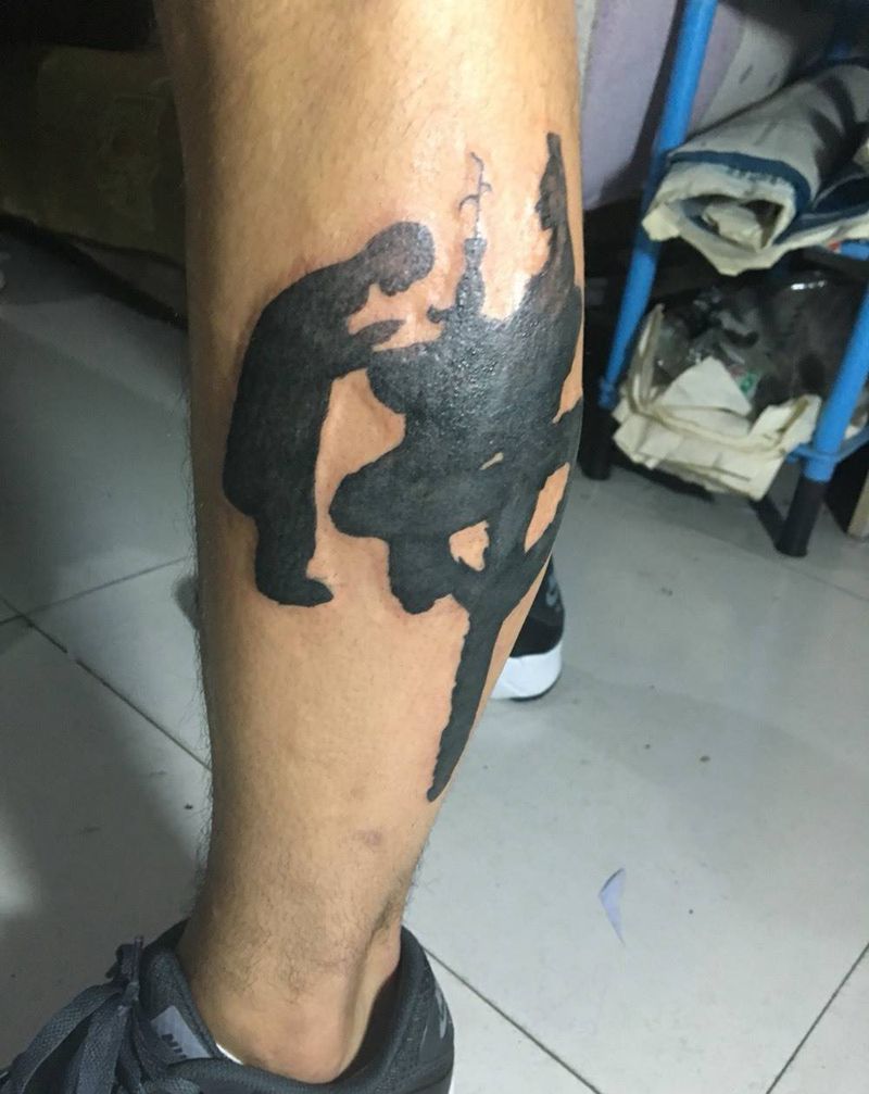 • T包小腿吹火男+阿多福纹身图片_腿部老传统新传统吹火男阿