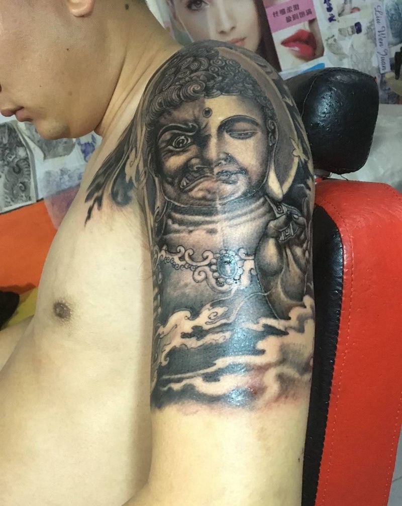 佛教题材纹身图片_成品肩部传统人物纹身图案