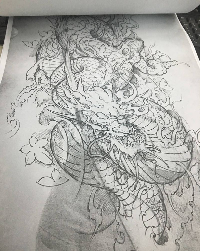 • T网红王老大花腿龙纹身图片_腿部新传统纹身图案