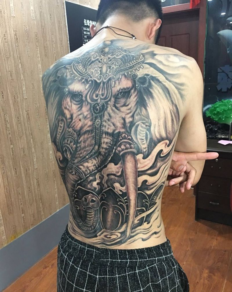 黑灰满背纹身图案