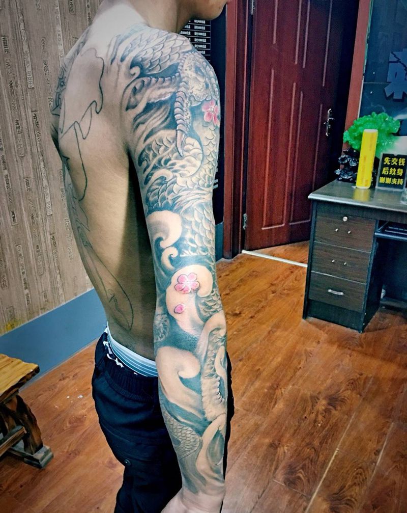 当前位置: 首页 >山东省聊城市纹身店-伍缔堂刺青馆阿涛纹身图案>大龙遮盖麒麟纹身图片