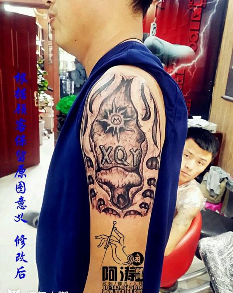 当前位置: 首页 >山东省聊城市纹身店-伍缔堂刺青馆阿涛纹身图案>修改图腾文字纹身图片_肩部纹身图案