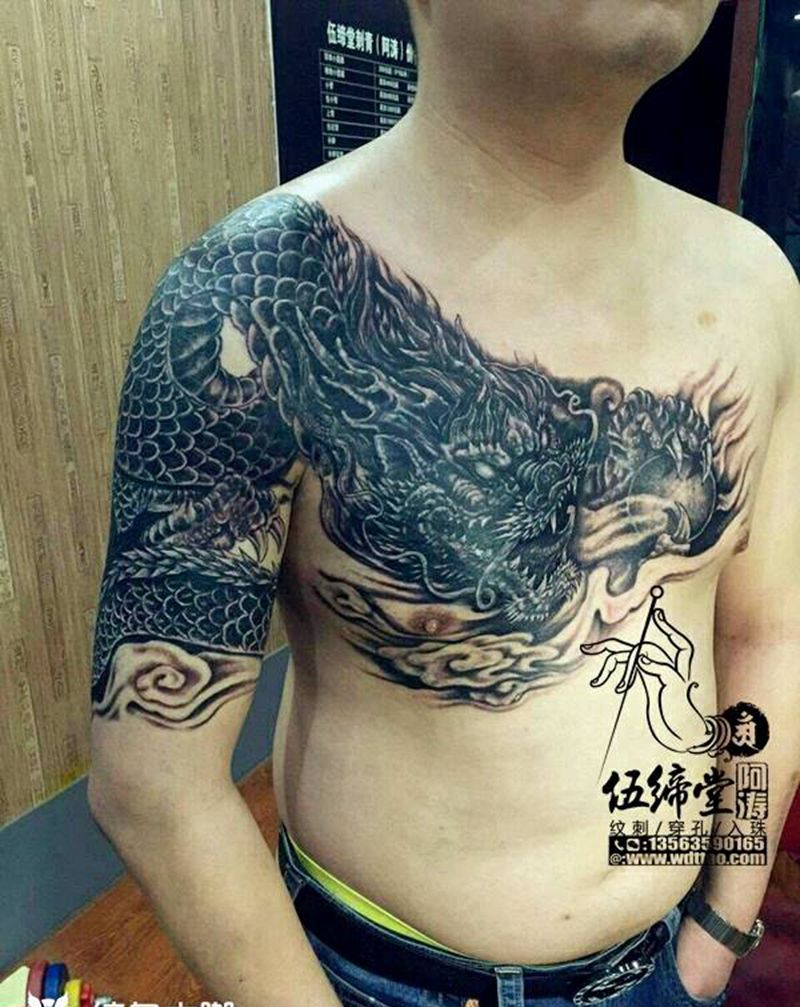 遮盖大龙纹身图片_肩部胸部传统原创遮盖纹身图案